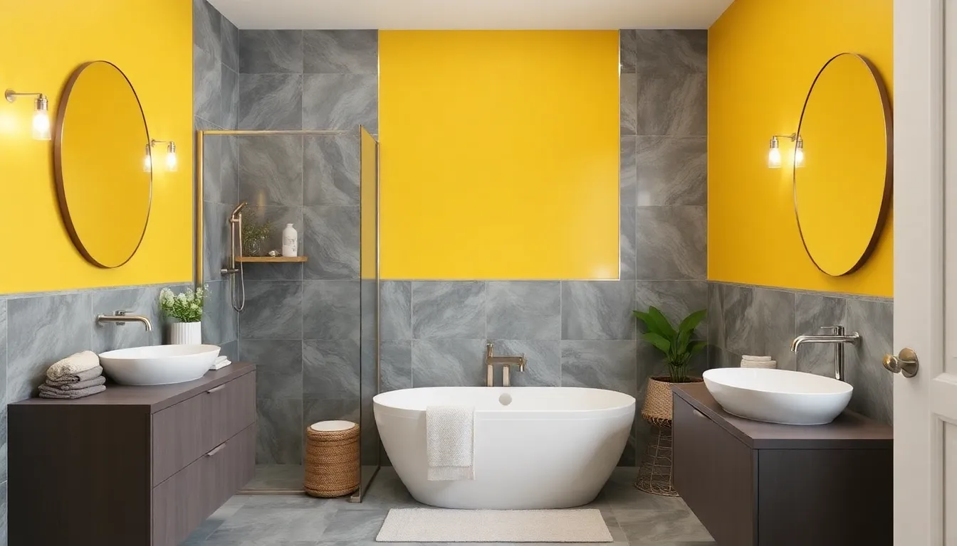 Un esquema de colores amarillo y gris es una elección audaz que puede aportar luminosidad y modernidad a un baño. Este enfoque no solo es visualmente atractivo, sino que también puede influir positivamente en el estado de ánimo de quienes lo utilizan. El amarillo, asociado con la alegría y la energía, se combina a la perfección con el gris, que ofrece elegancia y sofisticación.
